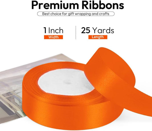 1 Inch Orange Ribbon, 25 Yards Orange Stain Ribbon for Gift Wrapping, Halloween, Christmas and Birthday Party Decoration, Craft, Flower Bouquet, Sewing