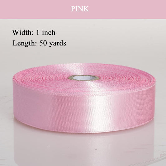 1 Inch Pink Solid Satin Ribbon, 50 Yards Craft Fabric Ribbon for Gift Wrapping Floral Bouquets Wedding Party Decoration