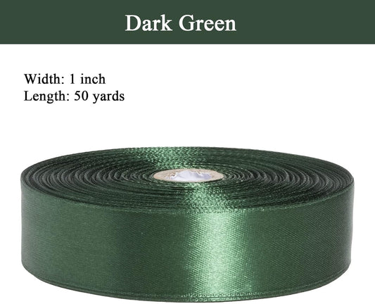 1 Inch Dark Green Solid Satin Ribbon, 50 Yards Craft Fabric Ribbon for Gift Wrapping Floral Bouquets Wedding Party Decoration
