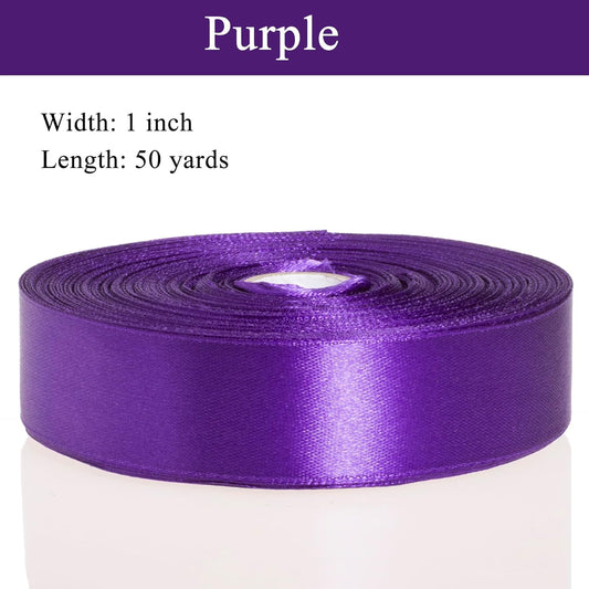 1 Inch Purple Solid Satin Ribbon, 50 Yards Craft Fabric Ribbon for Gift Wrapping Floral Bouquets Wedding Party Decoration