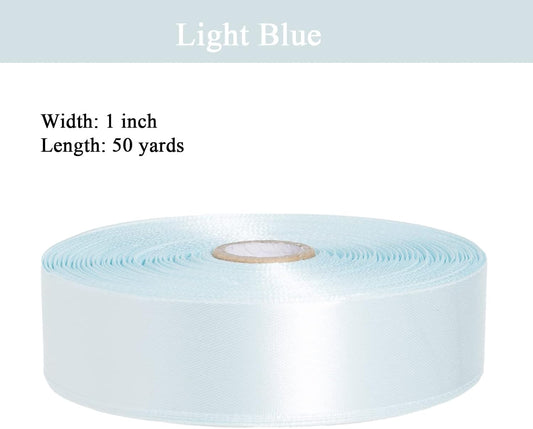 1 Inch Light Blue Solid Satin Ribbon, 50 Yards Craft Fabric Ribbon for Gift Wrapping Floral Bouquets Wedding Party Decoration
