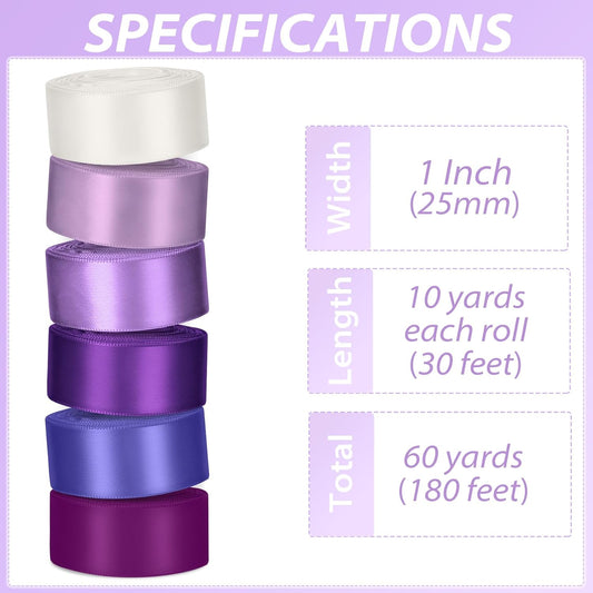1 Inch Purple Satin Ribbons for Crafts, 6 Rolls Single-Faced Purple Assorted Ribbons for Gift Wrapping Flower Bouquet Wedding Invitations Bridal Shower Hair Bows Garland Party Decor