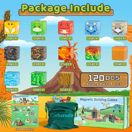 1 inch Magnetic Blocks - 120PCS Magnetic Toy Set, STEM Montessori Sensory Toys for 3+ Year Old Boys & Girls, Creative Construction Toys Gift for Toddlers Kids