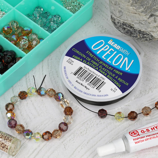 The Beadsmith Opelon Stretch Cord – Elastic Beading Fiber, Black, 0.8 mm Diameter, 5 Meters (16.4 ft) Spool