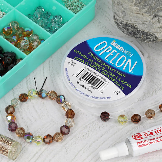 The Beadsmith Opelon Stretch Cord – Elastic Beading Fiber, White, 0.8 mm Diameter, 5 Meters (16.4 ft) Spool
