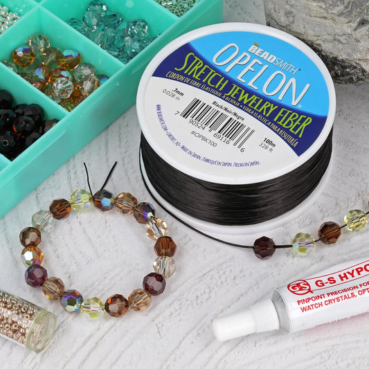 The Beadsmith Opelon Stretch Cord – Elastic Beading Fiber, Black, 0.7 mm Diameter, 100 Meters (328 ft) Spool
