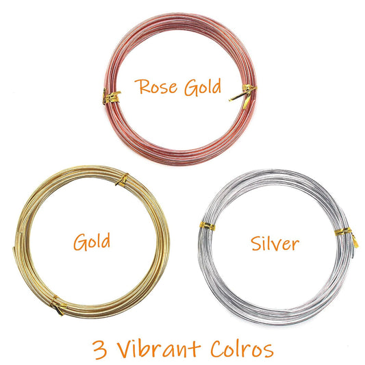 Cinvo 3 Rolls Craft Wire Jewelry Beading Wire Flexible Aluminum Wire Tarnish Resistant for DIY Jewelry Craft Making (12 Gauge/2mm Thick, Silver, Gold and Rose Gold)