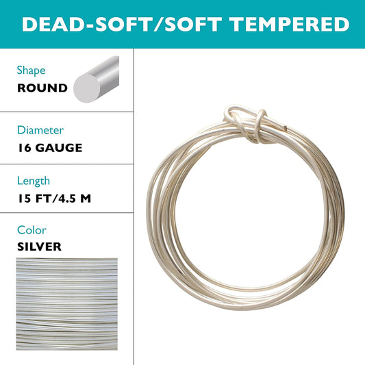 The Beadsmith Wire Elements Craft Wire – Tarnish Resistant, Soft Temper, Round, Silver Color – 1.3mm, 16 Gauge, 15 Foot Spool – Jewelry Making, Wire Wrapping, Floral, & Other DIY Crafts