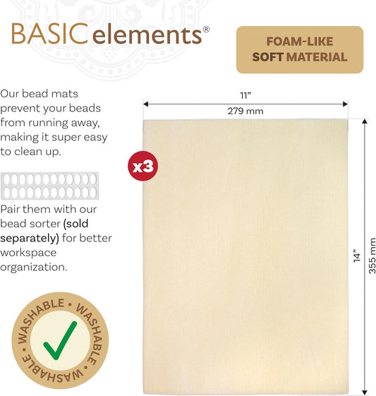 The Beadsmith Beading Mats Set – Double-Sided Stringing Work Mats, 3-Pack, 11"x14" Each, Washable, Wrinkle-Free, Soft Foam-Like Texture