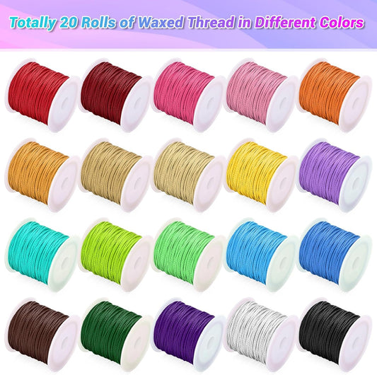 Cridoz 20 Rolls Wax String for Bracelet Making, Waxed Thread Bracelet Cord, Waxed Polyester Cord Bracelet Rope for DIY Bracelets, Necklace and Macrame