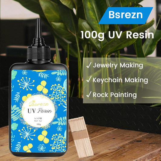 Bsrezn 100g UV Resin Hard with 8 Wooden Sticks Premixed Resina UV for Jewelry Making (100g x 1)