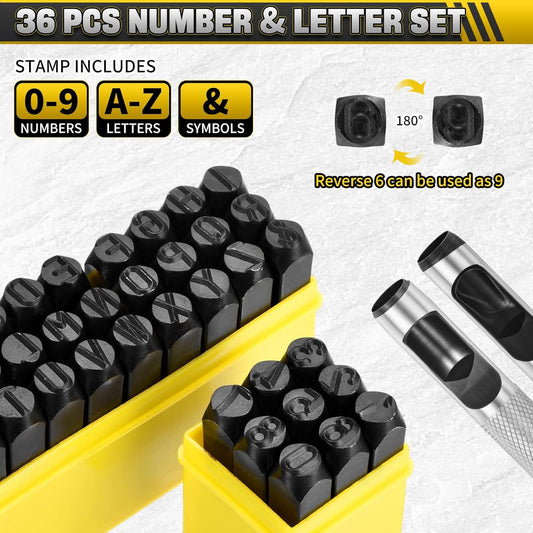 WorkBless 36PCS Metal Stamping Kit, 1/4" (6mm) Steel Number and Letter Punch Set, Include A-Z Alphabet, Number 0-8, & Symbol, Stamping Tool for Imprinting Plastic, Wood, Leather, Jewelry