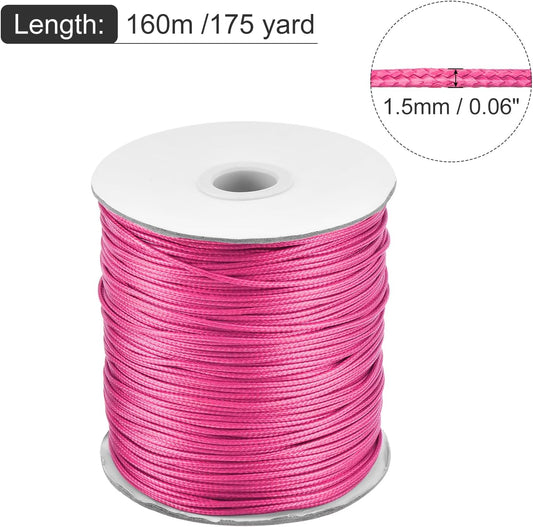 MECCANIXITY Waxed Cord 1.5mm Waxed Polyester Cord 175 Yard Wax String for Bracelet Making,Necklaces, Beading,Jewelry Making and DIY Crafts(Dark Pink)