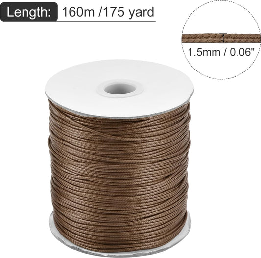 MECCANIXITY Waxed Cord 1.5mm Waxed Polyester Cord 175 Yard Wax String for Bracelet Making,Necklaces, Beading,Jewelry Making and DIY Crafts(Brown)