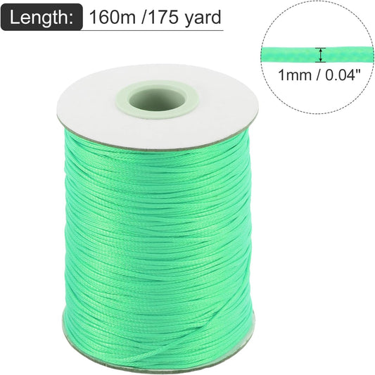 MECCANIXITY Waxed Cord 1mm Waxed Polyester Cord 175 Yard Wax String for Bracelet Making,Necklaces, Beading,Jewelry Making and DIY Crafts(Bright Green)