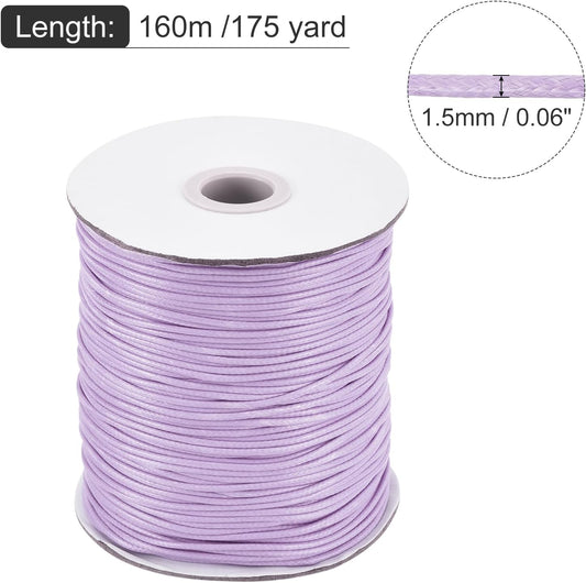 MECCANIXITY Waxed Cord 1.5mm Waxed Polyester Cord 175 Yard Wax String for Bracelet Making,Necklaces, Beading,Jewelry Making and DIY Crafts(Light Purple)