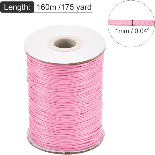 MECCANIXITY Waxed Cord 1mm Waxed Polyester Cord 175 Yard Wax String for Bracelet Making,Necklaces, Beading,Jewelry Making and DIY Crafts(Pink)