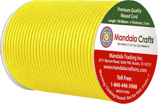 Mandala Crafts 2mm 109 Yards Yellow Cotton Waxed Cord for Jewelry Making Bracelet Cord Waxed String - Beading String Thread Jewelry Cords for Necklaces String