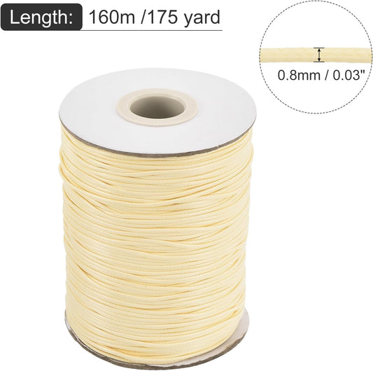 MECCANIXITY Waxed Cord 0.8mm Waxed Polyester Cord 175 Yard Wax String for Bracelet Making,Necklaces, Beading,Jewelry Making and DIY Crafts(Beige)