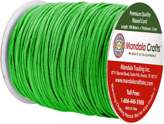 Mandala Crafts 2mm 109 Yards Green Cotton Waxed Cord for Jewelry Making Bracelet Cord Waxed String - Beading String Thread Jewelry Cords for Necklaces String