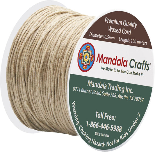Mandala Crafts 0.5mm 109 Yards Natural Cotton Waxed Cord for Jewelry Making Bracelet Cord Waxed String - Beading String Thread Jewelry Cords for Necklaces String