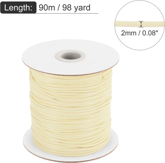 MECCANIXITY Waxed Polyester Cord 2mm 98 Yard Beige for Bracelet Making, Jewelry, DIY Crafts