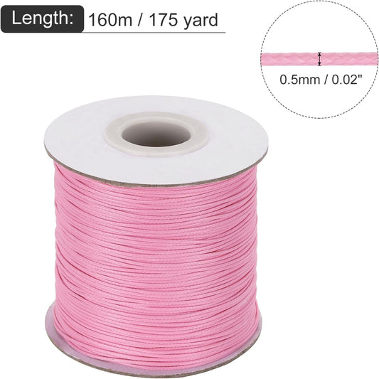 MECCANIXITY Waxed Cord 0.5mm Waxed Polyester Cord 175 Yard Wax String for Bracelet Making, Necklaces, Beading, Jewelry Making and DIY Crafts(Dark Pink)