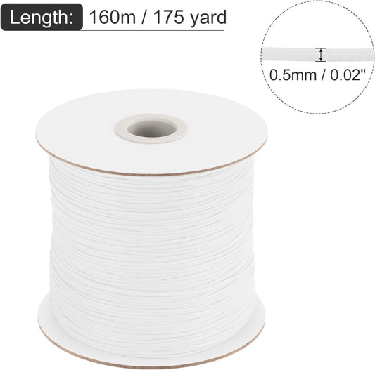 MECCANIXITY Waxed Polyester Cord 0.5mm 175 Yard White for Bracelet Making, Jewelry, DIY Crafts