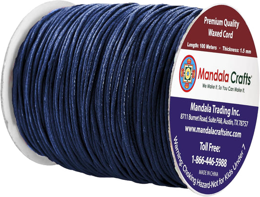 Mandala Crafts 1.5mm 109 Yards Navy Blue Cotton Waxed Cord for Jewelry Making Bracelet Cord Waxed String - Beading String Thread Jewelry Cords for Necklaces String
