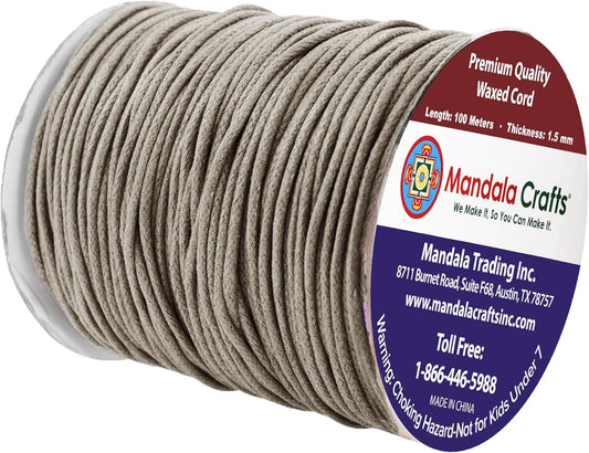 Mandala Crafts 1.5mm 109 Yards Taupe Cotton Waxed Cord for Jewelry Making Bracelet Cord Waxed String - Beading String Thread Jewelry Cords for Necklaces String