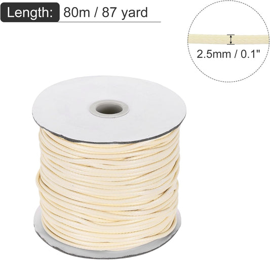 MECCANIXITY Waxed Cord 2.5mm Waxed Polyester Cord 87 Yard Wax String for Bracelet Making, Necklaces, Beading, Jewelry Making and DIY Crafts(Beige)