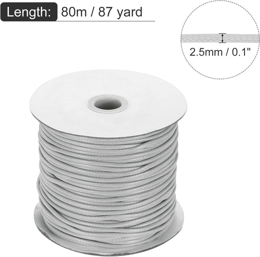 MECCANIXITY Waxed Cord 2.5mm Waxed Polyester Cord 87 Yard Wax String for Bracelet Making, Necklaces, Beading, Jewelry Making and DIY Crafts(Light Gray)