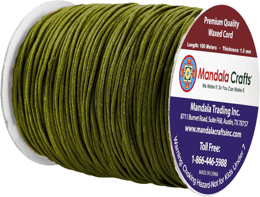 Mandala Crafts 1.5mm 109 Yards Dark Olive Green Cotton Waxed Cord for Jewelry Making Bracelet Cord Waxed String - Beading String Thread Jewelry Cords for Necklaces String