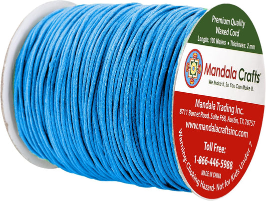 Mandala Crafts 2mm 109 Yards Sky Blue Cotton Waxed Cord for Jewelry Making Bracelet Cord Waxed String - Beading String Thread Jewelry Cords for Necklaces String