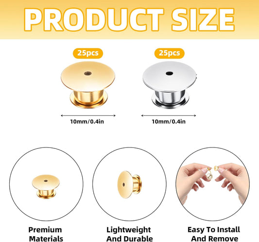Locking Pin Backs - Enamel Brooch Locks Buckle 50pcs Badge Lapel Button Back Lock for DIY Crafts(Gold and Silver)