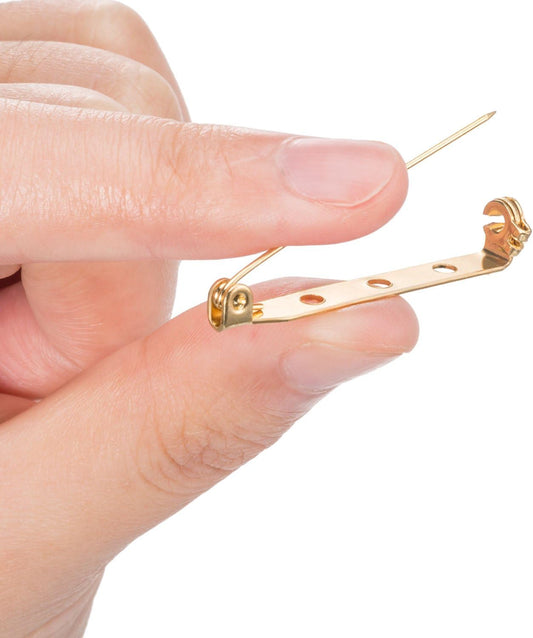 Shappy 100 Pieces Brooch Pin Backs Bar Pins Backs for Crafts Safety Clasp with Plastic Box, Gold and Silver, 4 Sizes, 20/25/32/38 mm
