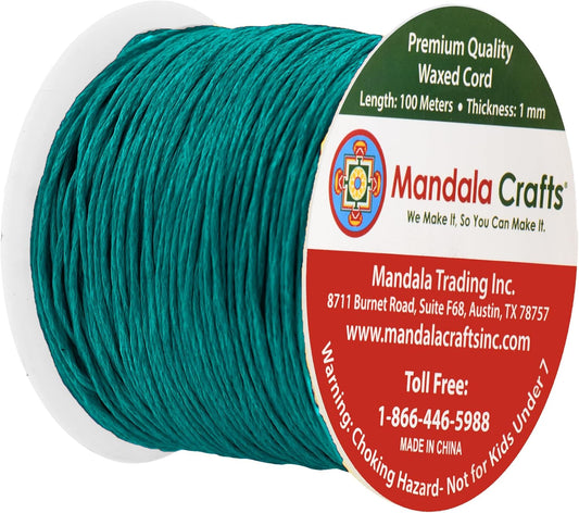 Mandala Crafts 1mm 109 Yards Teal Cotton Waxed Cord for Jewelry Making Bracelet Cord Waxed String - Beading String Thread Jewelry Cords for Necklaces String