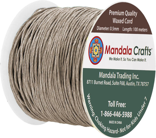 Mandala Crafts 0.5mm 109 Yards Taupe Cotton Waxed Cord for Jewelry Making Bracelet Cord Waxed String - Beading String Thread Jewelry Cords for Necklaces String
