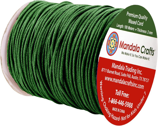 Mandala Crafts 2mm 109 Yards Evergreen Cotton Waxed Cord for Jewelry Making Bracelet Cord Waxed String - Beading String Thread Jewelry Cords for Necklaces String