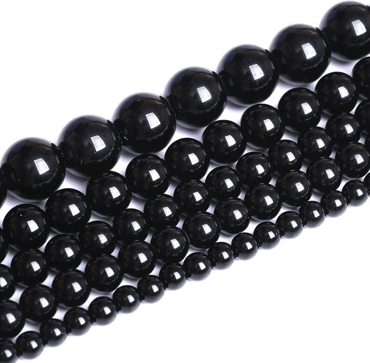 8mm 51pcs Natural Black Agates Onyx Stone Beads Smooth Round Loose Spacer Beads for Jewelry Making DIY Bracelets 15"