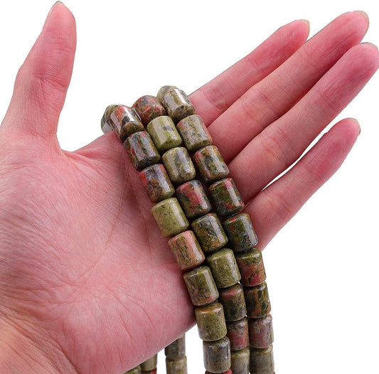 Natural Unakite Cylinder Stone Loose Semi Gemstone Beads for Jewelry Making 10mmx14mm 38cm