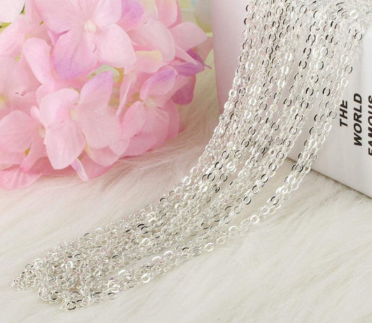 Wholesale 12 PCS Silver Plated Solid Brass Fine Flat Cable Chains Bulk for Jewelry Making 18-30 inches (24 Inch(2MM))
