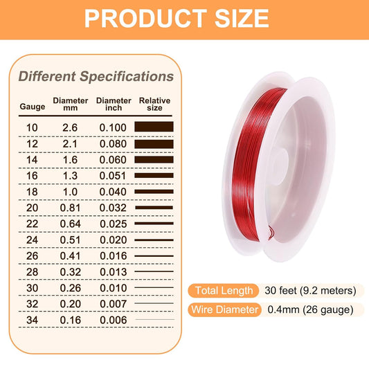 HARFINGTON 30ft Jewelry Wire, 26 Gauge (0.4mm) Brass Craft Soft Metal Tarnish Resistant Copper Beading Wire for Jewelry Making Supplies Crafting, Bright Red