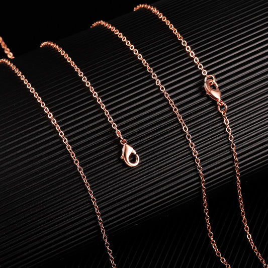 ALEXCRAFT Wholesale 12PCS Rose Gold Plated Solid Brass Chain Hypoallergenic Flat Cable Chains Link Bulk for Jewelry Making(18"(1.5MM))