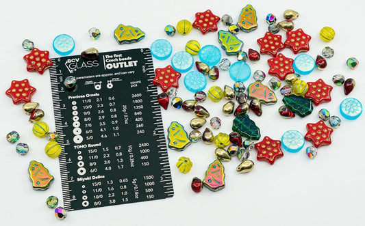 2.1 oz of Czech Glass Beads - Christmas Winter Mix 2025 - Big Star, Teardrop, and Cube Beads for DIY Bracelet Decoration
