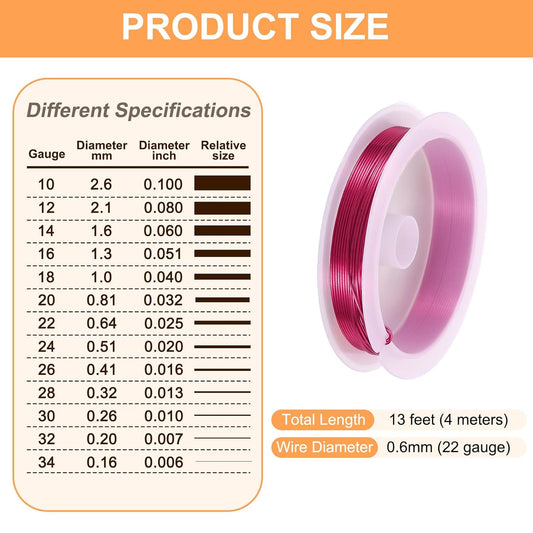 HARFINGTON 13ft Jewelry Wire, 22 Gauge (0.6mm) Brass Craft Soft Metal Tarnish Resistant Copper Beading Wire for Jewelry Making Supplies Crafting, Rose Red