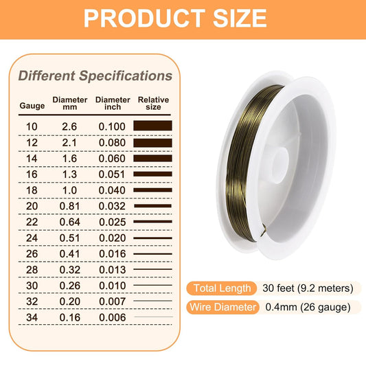 HARFINGTON 49ft Jewelry Wire, 28 Gauge (0.3mm) Brass Craft Soft Metal Tarnish Resistant Copper Beading Wire for Jewelry Making Supplies Crafting, Coffee