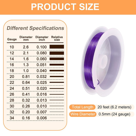 HARFINGTON 20ft Jewelry Wire, 24 Gauge (0.5mm) Brass Craft Soft Metal Tarnish Resistant Copper Beading Wire for Jewelry Making Supplies Crafting, Purple