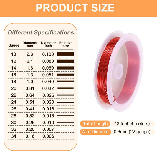 HARFINGTON 13ft Jewelry Wire, 22 Gauge (0.6mm) Brass Craft Soft Metal Tarnish Resistant Copper Beading Wire for Jewelry Making Supplies Crafting, Bright Red