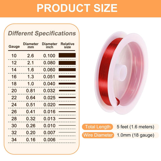 HARFINGTON 5ft Jewelry Wire, 18 Gauge (1mm) Brass Craft Soft Metal Tarnish Resistant Copper Beading Wire for Jewelry Making Supplies Crafting, Bright Red